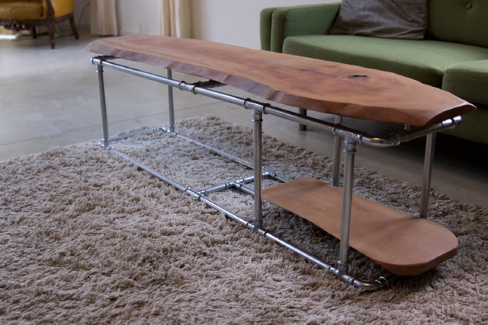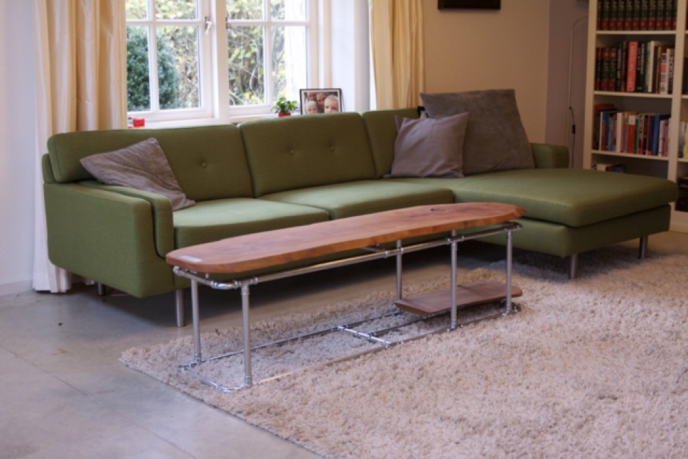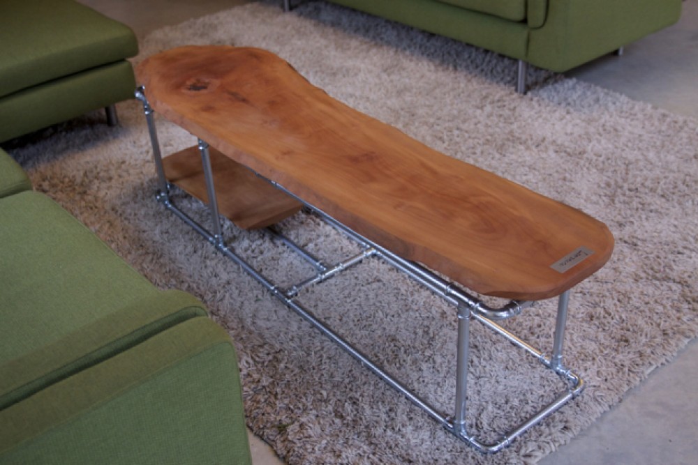 This table is made out of a single piece of Platanus wood. The base is made out of central heating piping material.